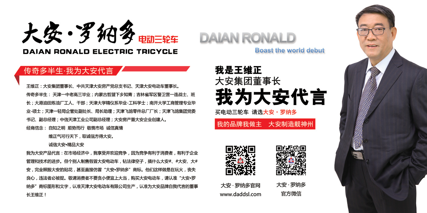天津大安電動車有限公司 大安·羅納多電動三輪車董事長代言下載